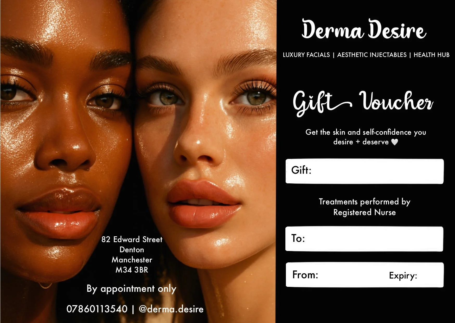 * Gift Vouchers can be collected or posted (3-5 working days) if preferred over pdf file. Please email infodermadesire@gmail.com